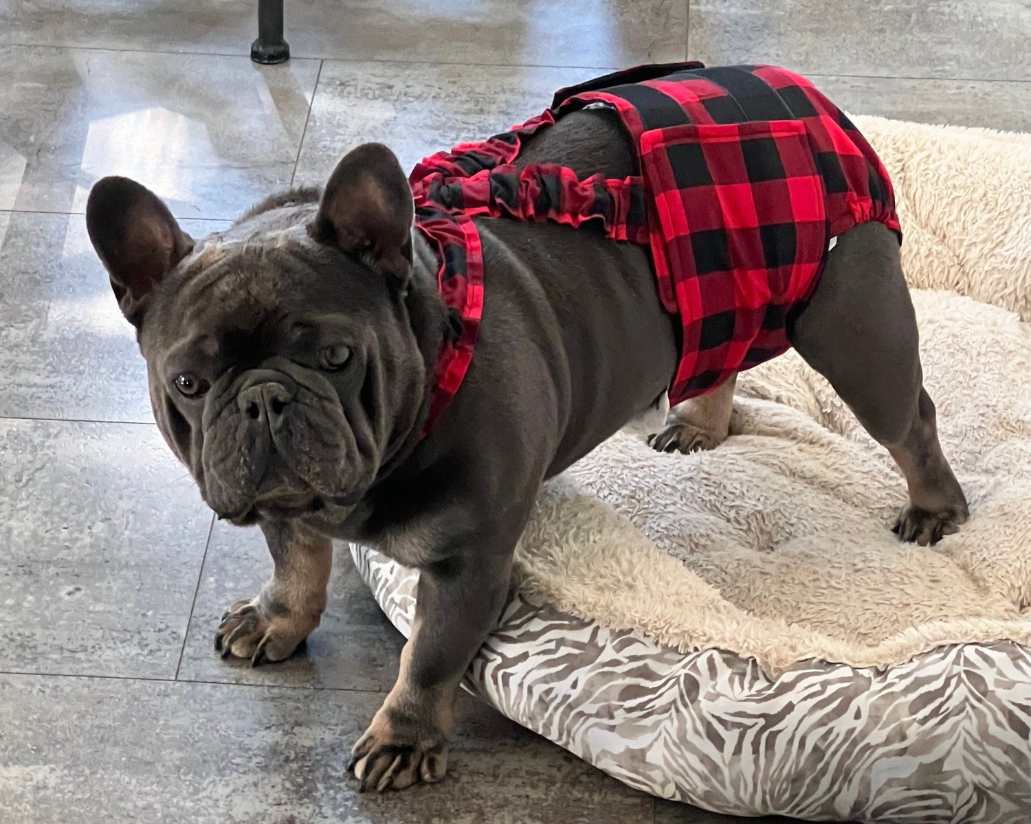 "Love this diaper for my female incontinent Frenchie! So cute , made well and fits her perfectly. I will be buying more!" - Denise