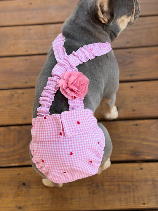 French Bulldog/ English Bulldog Washable Dog Diaper with Suspenders for Female Dogs - Pink Gingham - Wephies