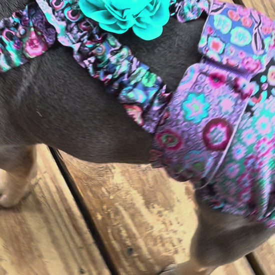 No Tail Hole Female FRENCH BULLDOG DIAPER Purple Paisley with suspenders bitch britches heat pants for dog mom
