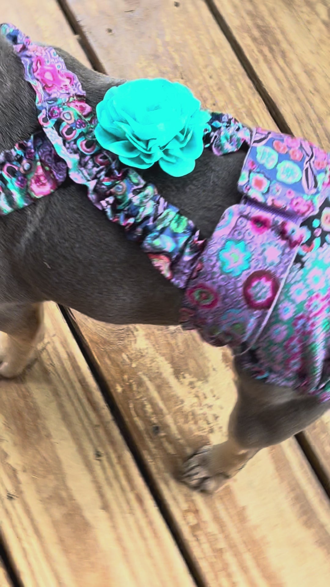 Our Female English or French Bulldog or Boston Terrier Heat Diaper is handmade and comes highly recommended! Diapers have no tail hole. I use elastic in the suspenders and Hook and Loop around the waist so they are adjustable and will fit your adult female Bulldog comfortably. Everyone loves how these diapers stay on their dogs! Escape proof!
